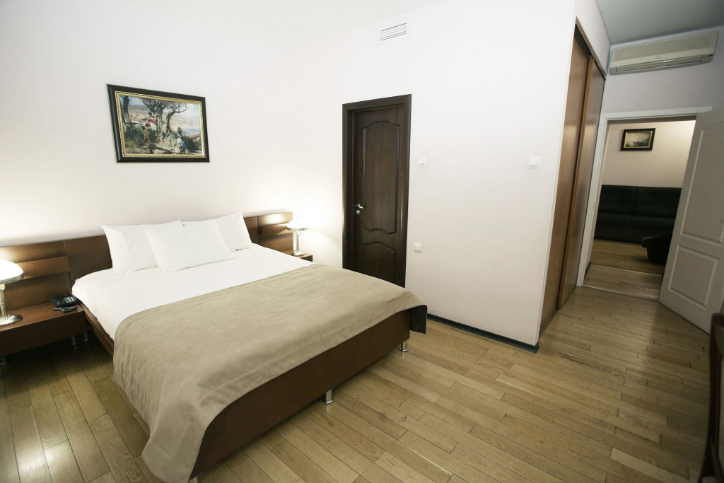 Плюсы: Хорошее расположение, все основные достопримечательности рядом, а так же рядом метро. Приветливый персонал, в номере убирались каждый день. Очень удобная кровать, прекрасная ванная с гидромассажем. Чудесный вид из окна. Wi-Fi работает отлично. Единственный минус, что на завтрак надо идти в кафе рядом, т.к. приходится выходить на улицу, в общем в тапочках и халате уже не сходить позавтракать, но это мелочи, т.к. завтрак тоже отличный, шведский стол, большой выбор блюд.