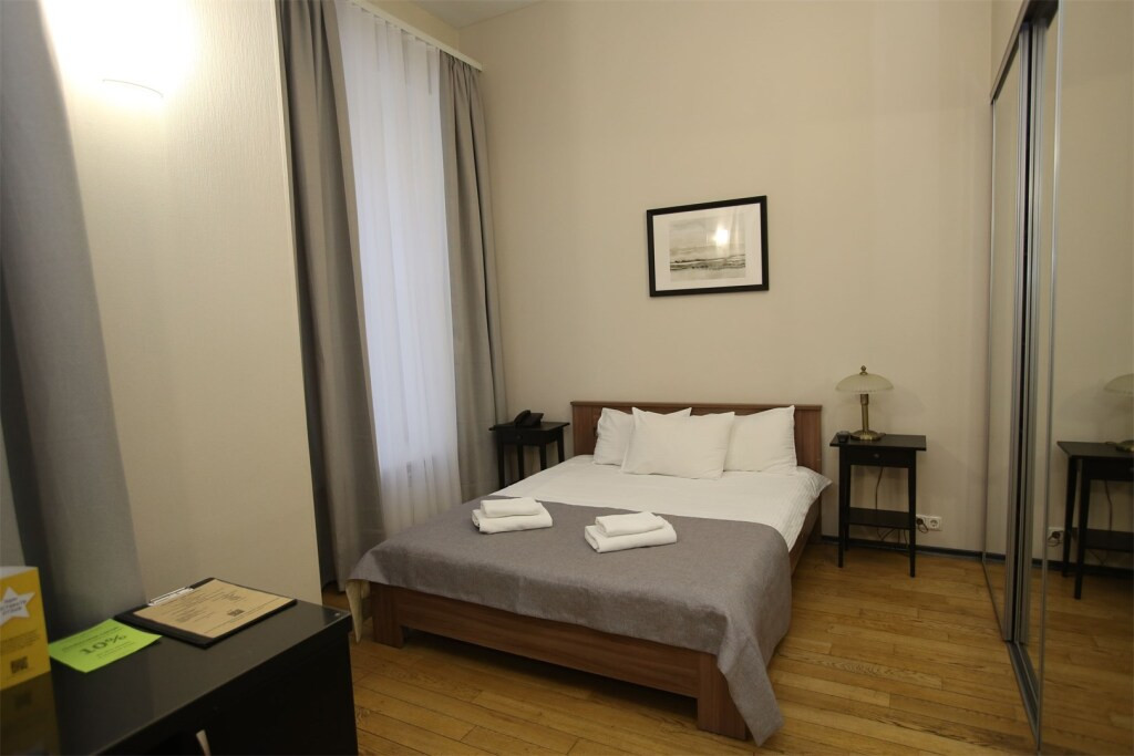 Плюсы: Отличное расположение в самом центре. Здание представляет из себя типичный питерский двор-колодец, что добавляет свой шарм. Очень приветливые девушки на рецепции. Завтрак предлагается в соседнем кафе.